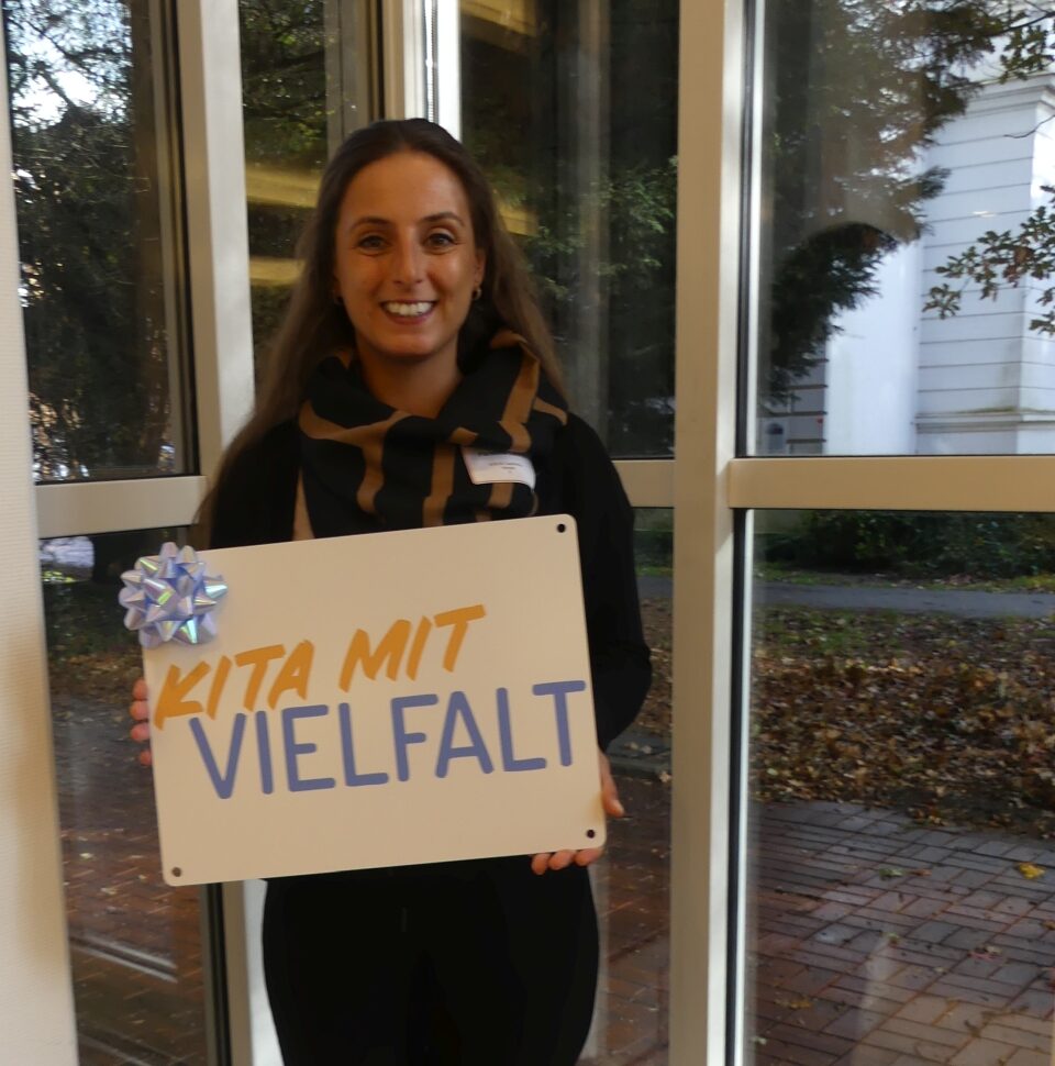 Hinter unserer Stellvertretenden Kita-Leiterin Laura Parasiliti, die die Auszeichnung in Viersen entgegennahm, finden sich noch mehr Bilder zu unserer Kita mit Vielfalt!